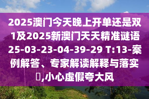 2025澳門今天晚上開單還是雙1及2025新澳門天天精準(zhǔn)謎語25-03-23-04-39-29 T:13-案例解答、專家解讀解釋與落實(shí)?,小心虛假夸大風(fēng)