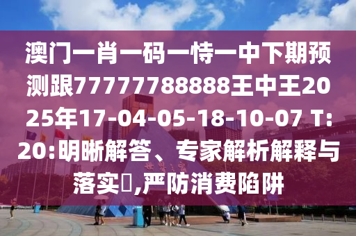 澳門一肖一碼一恃一中下期預(yù)測跟77777788888王中王2025年17-04-05-18-10-07 T:20:明晰解答、專家解析解釋與落實?,嚴(yán)防消費陷阱