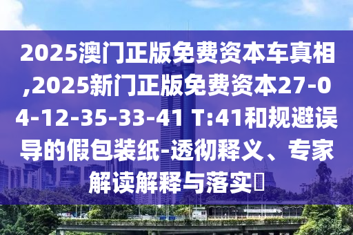2025澳門(mén)正版免費(fèi)資本車(chē)真相,2025新門(mén)正版免費(fèi)資本27-04-12-35-33-41 T:41和規(guī)避誤導(dǎo)的假包裝紙-透徹釋義、專(zhuān)家解讀解釋與落實(shí)?