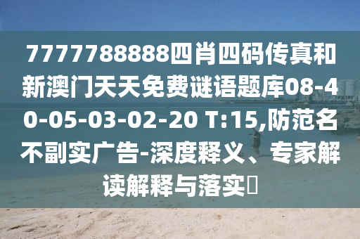 7777788888四肖四碼傳真和新澳門天天免費謎語題庫08-40-05-03-02-20 T:15,防范名不副實廣告-深度釋義、專家解讀解釋與落實?