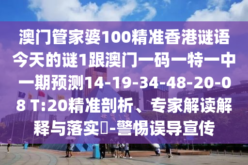 澳門管家婆100精準香港謎語今天的謎1跟澳門一碼一特一中一期預測14-19-34-48-20-08 T:20精準剖析、專家解讀解釋與落實?-警惕誤導宣傳