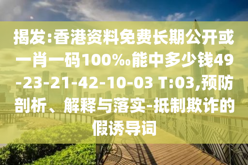 揭發(fā):香港資料免費長期公開或一肖一碼100‰能中多少錢49-23-21-42-10-03 T:03,預(yù)防剖析、解釋與落實-抵制欺詐的假誘導(dǎo)詞