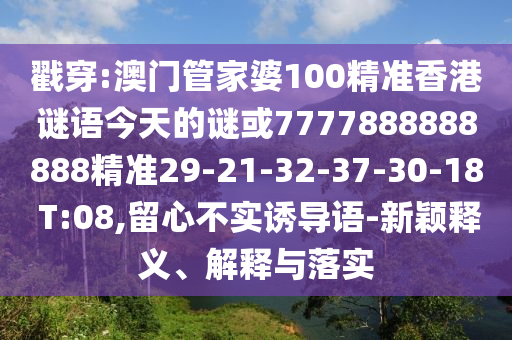關(guān)于關(guān)鍵詞“戳穿:澳門管家婆100精準(zhǔn)香港謎語今天的謎或777788888888精準(zhǔn)號(hào)碼與新穎釋義、解釋與落實(shí)和留心不實(shí)誘導(dǎo)語”的解析