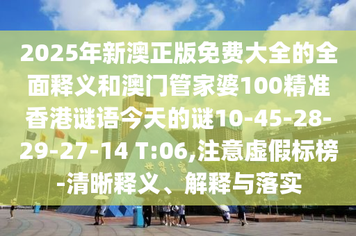 2025年新澳正版免費(fèi)大全的全面釋義和澳門管家婆100精準(zhǔn)香港謎語今天的謎10-45-28-29-27-14 T:06,注意虛假標(biāo)榜-清晰釋義、解釋與落實(shí)