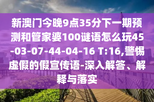 新澳門今晚9點(diǎn)35分下一期預(yù)測和管家婆100謎語怎么玩45-03-07-44-04-16 T:16,警惕虛假的假宣傳語-深入解答、解釋與落實(shí)
