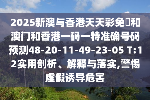 2025新澳與香港天天彩免費和澳門和香港一碼一特準確號碼預(yù)測48-20-11-49-23-05 T:12實用剖析、解釋與落實,警惕虛假誘導(dǎo)危害