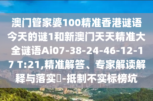 澳門管家婆100精準(zhǔn)香港謎語今天的謎1和新澳門天天精準(zhǔn)大全謎語Ai07-38-24-46-12-17 T:21,精準(zhǔn)解答、專家解讀解釋與落實(shí)?-抵制不實(shí)標(biāo)榜坑