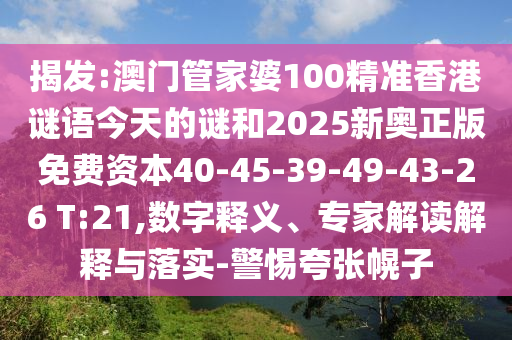 揭發(fā):澳門管家婆100精準香港謎語今天的謎和2025新奧正版免費資本40-45-39-49-43-26 T:21,數(shù)字釋義、專家解讀解釋與落實-警惕夸張幌子
