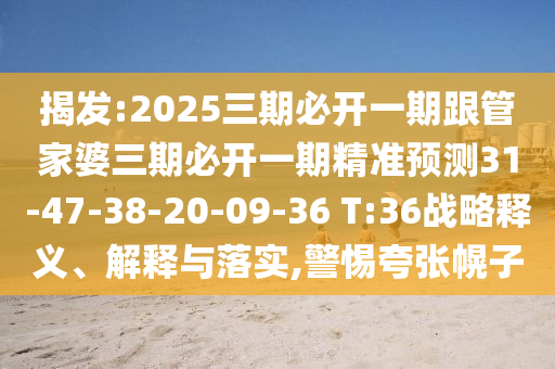 揭發(fā):2025三期必開一期跟管家婆三期必開一期精準(zhǔn)預(yù)測31-47-38-20-09-36 T:36戰(zhàn)略釋義、解釋與落實(shí),警惕夸張幌子