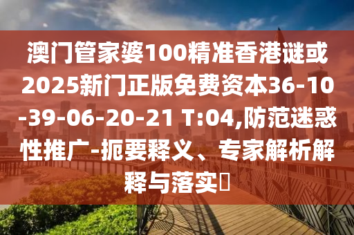 澳門管家婆100精準香港謎或2025新門正版免費資本36-10-39-06-20-21 T:04,防范迷惑性推廣-扼要釋義、專家解析解釋與落實?
