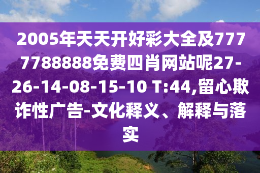 2005年天天開好彩大全及7777788888免費(fèi)四肖網(wǎng)站呢27-26-14-08-15-10 T:44”的文化釋義、解釋與落實以及防范虛假宣傳的警示