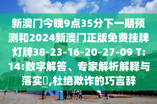 新澳門今晚9點(diǎn)35分下一期預(yù)測和2024新澳門正版免費(fèi)掛牌燈牌38-23-16-20-27-09 T:14:數(shù)字解答、專家解析解釋與落實(shí)?,杜絕欺詐的巧言辭