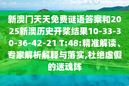 新澳門天天免費(fèi)謎語答案和2025新澳歷史開槳結(jié)果10-33-30-36-42-21 T:48:精準(zhǔn)解讀、專家解析解釋與落實(shí),杜絕虛假的迷魂陣
