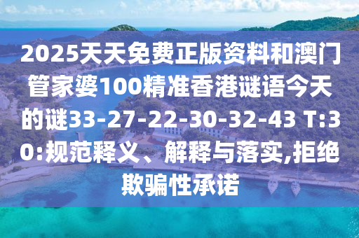 2025天天免費(fèi)正版資料和澳門管家婆100精準(zhǔn)香港謎語(yǔ)今天的謎33-27-22-30-32-43 T:30:規(guī)范釋義、解釋與落實(shí),拒絕欺騙性承諾