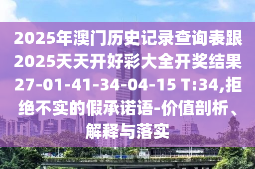 2025年澳門歷史記錄查詢表跟2025天天開好彩大全開獎結果27-01-41-34-04-15 T:34,拒絕不實的假承諾語-價值剖析、解釋與落實