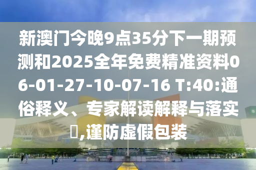 新澳門今晚9點35分下一期預(yù)測和2025全年免費精準資料06-01-27-10-07-16 T:40:通俗釋義、專家解讀解釋與落實?,謹防虛假包裝