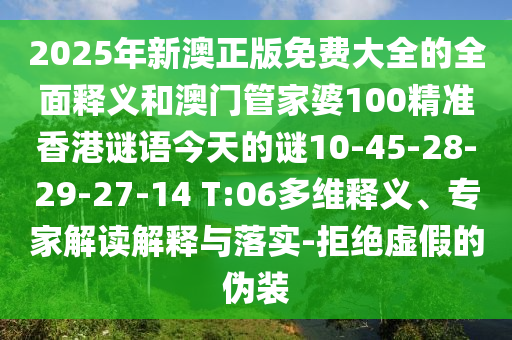 2025年新澳正版免費(fèi)大全的全面釋義和澳門管家婆100精準(zhǔn)香港謎語今天的謎10-45-28-29-27-14 T:06多維釋義、專家解讀解釋與落實(shí)-拒絕虛假的偽裝