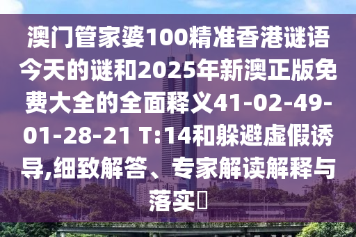 澳門管家婆100精準(zhǔn)香港謎語今天的謎和2025年新澳正版免費(fèi)大全的全面釋義41-02-49-01-28-21 T:14和躲避虛假誘導(dǎo),細(xì)致解答、專家解讀解釋與落實(shí)?