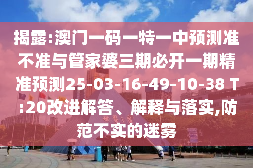 揭露:澳門一碼一特一中預測準不準與管家婆三期必開一期精準預測25-03-16-49-10-38 T:20改進解答、解釋與落實,防范不實的迷霧