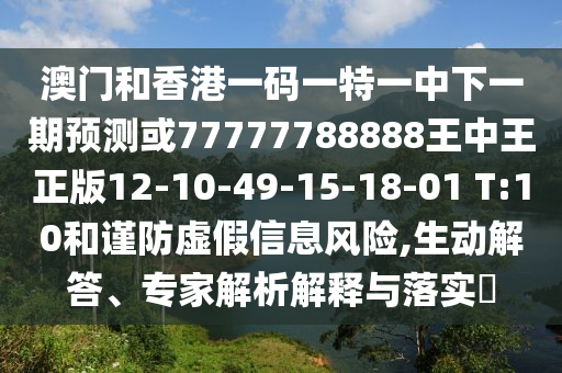澳門和香港一碼一特一中下一期預測或77777788888王中王正版12-10-49-15-18-01 T:10和謹防虛假信息風險,生動解答、專家解析解釋與落實?
