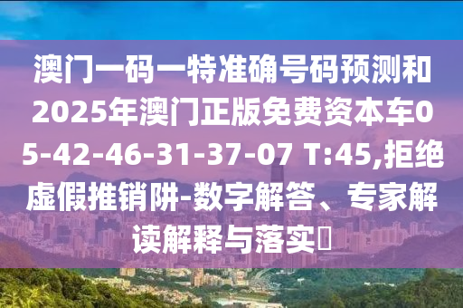 澳門(mén)一碼一特準(zhǔn)確號(hào)碼預(yù)測(cè)和2025年澳門(mén)正版免費(fèi)資本車(chē)05-42-46-31-37-07 T:45,拒絕虛假推銷(xiāo)阱-數(shù)字解答、專(zhuān)家解讀解釋與落實(shí)?