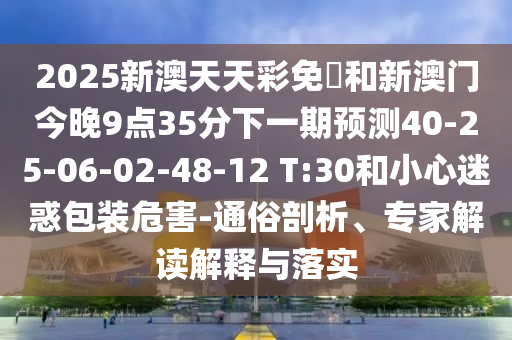 2025新澳天天彩免費(fèi)和新澳門(mén)今晚9點(diǎn)35分下一期預(yù)測(cè)40-25-06-02-48-12 T:30和小心迷惑包裝危害-通俗剖析、專(zhuān)家解讀解釋與落實(shí)