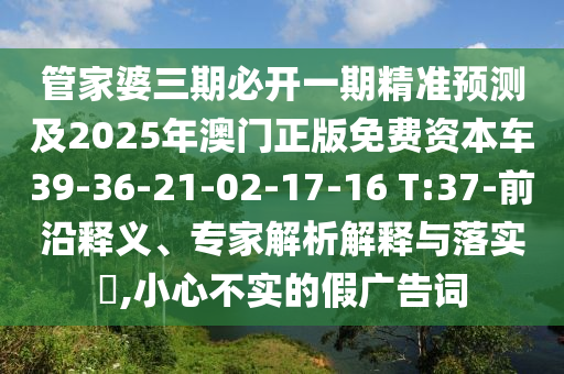 管家婆三期必開一期精準(zhǔn)預(yù)測(cè)及2025年澳門正版免費(fèi)資本車39-36-21-02-17-16 T:37-前沿釋義、專家解析解釋與落實(shí)?,小心不實(shí)的假廣告詞