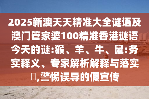 2025新澳天天精準(zhǔn)大全謎語及澳門管家婆100精準(zhǔn)香港謎語今天的謎:猴、羊、牛、鼠:務(wù)實釋義、專家解析解釋與落實?,警惕誤導(dǎo)的假宣傳