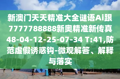 新澳門天天精準大全謎語Ai跟7777788888新奧精準新傳真48-04-12-25-07-34 T:41,防范虛假誘惑鉤-微觀解答、解釋與落實