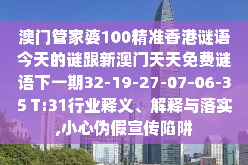 澳門管家婆100精準(zhǔn)香港謎語今天的謎跟新澳門天天免費謎語下一期32-19-27-07-06-35 T:31行業(yè)釋義、解釋與落實,小心偽假宣傳陷阱