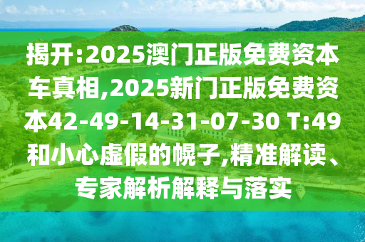 2025澳門正版免費(fèi)資本車真相,2025新門正版免費(fèi)資本42-49-14-31-07-30 T:49:精準(zhǔn)解讀、專家解析解釋與落實