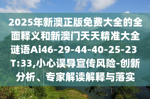2025年新澳正版免費大全的全面釋義和新澳門天天精準大全謎語Ai46-29-44-40-25-23 T:33,小心誤導(dǎo)宣傳風(fēng)險-創(chuàng)新分析、專家解讀解釋與落實