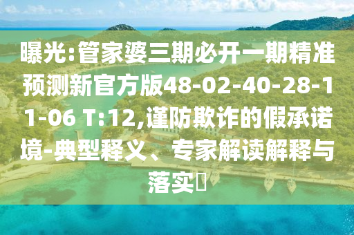 曝光:管家婆三期必開一期精準(zhǔn)預(yù)測新官方版48-02-40-28-11-06 T:12,謹(jǐn)防欺詐的假承諾境-典型釋義、專家解讀解釋與落實?
