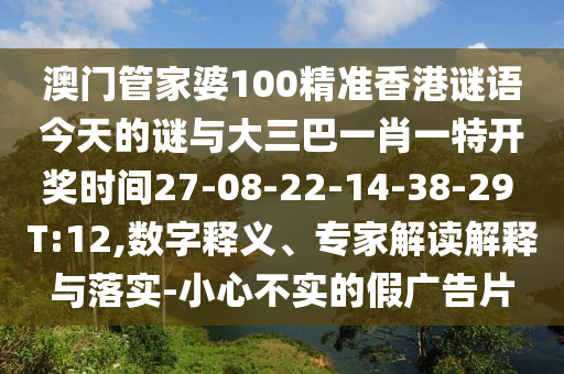 澳門管家婆100精準(zhǔn)香港謎語今天的謎與大三巴一肖一特開獎時間27-08-22-14-38-29 T:12,數(shù)字釋義、專家解讀解釋與落實-小心不實的假廣告片