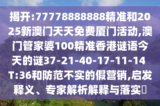揭開:77778888888精準(zhǔn)和2025新澳門天天免費廈門活動,澳門管家婆100精準(zhǔn)香港謎語今天的謎37-21-40-17-11-14 T:36和防范不實的假營銷,啟發(fā)釋義、專家解析解釋與落實?