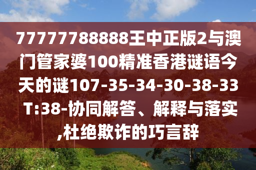 77777788888王中正版2與澳門管家婆100精準香港謎語今天的謎107-35-34-30-38-33 T:38的協(xié)同解答、解釋與落實