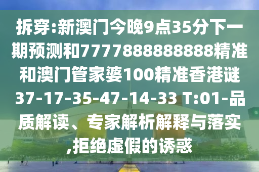 拆穿:新澳門今晚9點(diǎn)35分下一期預(yù)測和7777888888888精準(zhǔn)和澳門管家婆100精準(zhǔn)香港謎37-17-35-47-14-33 T:01-品質(zhì)解讀、專家解析解釋與落實(shí),拒絕虛假的誘惑