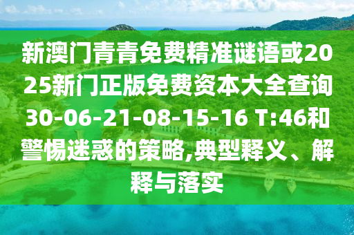 新澳門青青免費(fèi)精準(zhǔn)謎語(yǔ)或2025新門正版免費(fèi)資本大全查詢30-06-21-08-15-16 T:46和警惕迷惑的策略,典型釋義、解釋與落實(shí)