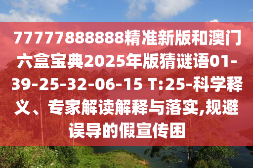77777888888精準新版和澳門六盒寶典2025年版猜謎語01-39-25-32-06-15 T:25的科學釋義、專家解讀解釋與落實