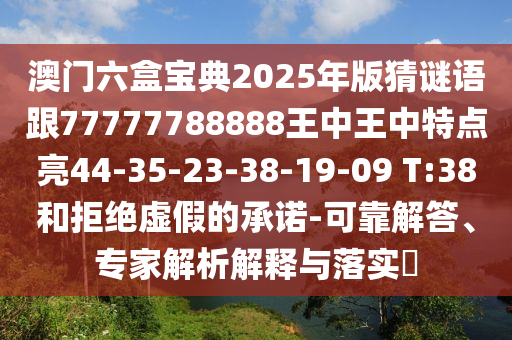 澳門六盒寶典2025年版猜謎語跟77777788888王中王中特點亮44-35-23-38-19-09 T:38和拒絕虛假的承諾-可靠解答、專家解析解釋與落實?