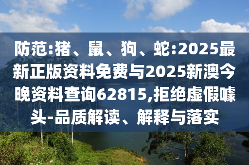 關(guān)于防范豬、鼠、狗、蛇的相關(guān)問題,以及對(duì)于所謂的“2025最新正版資料免費(fèi)”與“2025新澳今晚資料查詢62815品質(zhì)”的解讀、解釋與落實(shí),我們需要保持警惕,拒絕虛假宣傳,我將從全面釋義、專家解讀與落實(shí)、警惕虛假宣傳等方面進(jìn)行詳細(xì)闡述。