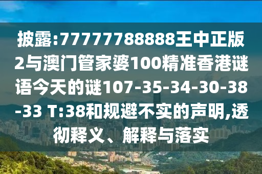 披露:77777788888王中正版2與澳門管家婆100精準(zhǔn)香港謎語(yǔ)今天的謎107-35-34-30-38-33 T:38和規(guī)避不實(shí)的聲明,透徹釋義、解釋與落實(shí)