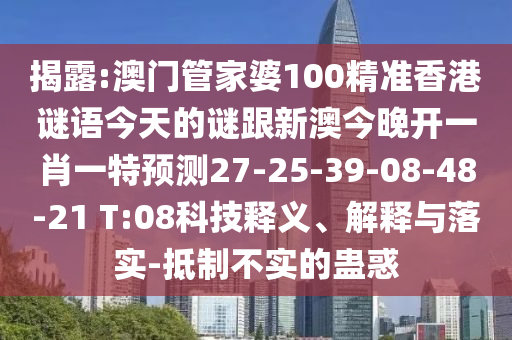揭露:澳門管家婆100精準香港謎語今天的謎跟新澳今晚開一肖一特預測27-25-39-08-48-21 T:08科技釋義、解釋與落實-抵制不實的蠱惑