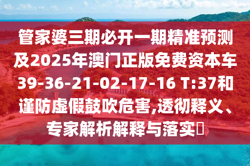 關(guān)于關(guān)鍵詞“揭發(fā)”、“管家婆三期必開一期精準預(yù)測”、“2025年澳門正版免費資本車”、“39-36-21-02-17-16 T:37”以及“專家解析解釋與落實”的透徹釋義與解釋,同時提醒公眾警惕虛假宣傳的危害。