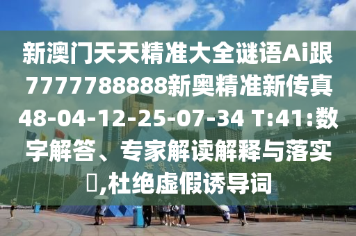 新澳門天天精準大全謎語Ai跟7777788888新奧精準新傳真48-04-12-25-07-34 T:41:數(shù)字解答、專家解讀解釋與落實?,杜絕虛假誘導(dǎo)詞