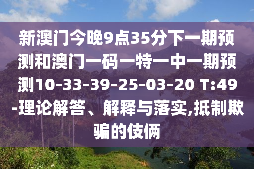 新澳門今晚9點(diǎn)35分下一期預(yù)測(cè)和澳門一碼一特一中一期預(yù)測(cè)10-33-39-25-03-20 T:49-理論解答、解釋與落實(shí),抵制欺騙的伎倆