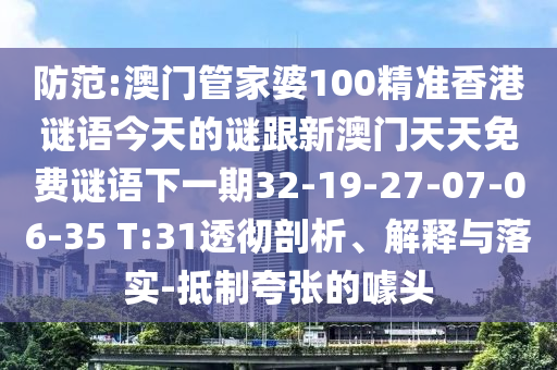 澳門管家婆100精準(zhǔn)香港謎語今天的謎跟新澳門天天免費謎語下一期32-19-27-07-06-35 T:31的透徹剖析、解釋與落實