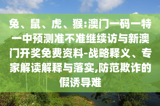 關(guān)于兔、鼠、虎、猴與澳門一碼一特一中預(yù)測(cè)的準(zhǔn)確性,以及新澳門開(kāi)獎(jiǎng)免費(fèi)資料的戰(zhàn)略釋義、專家解讀解釋與落實(shí),防范欺詐的假誘導(dǎo)難題
