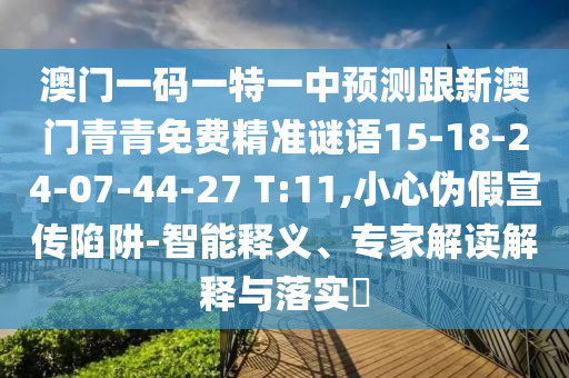 澳門(mén)一碼一特一中預(yù)測(cè)跟新澳門(mén)青青免費(fèi)精準(zhǔn)謎語(yǔ)15-18-24-07-44-27 T:11的智能釋義、專(zhuān)家解讀解釋與落實(shí)?