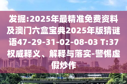 發(fā)掘:2025年最精準(zhǔn)免費(fèi)資料及澳門六盒寶典2025年版猜謎語47-29-31-02-08-03 T:37權(quán)威釋義、解釋與落實(shí)-警惕虛假炒作